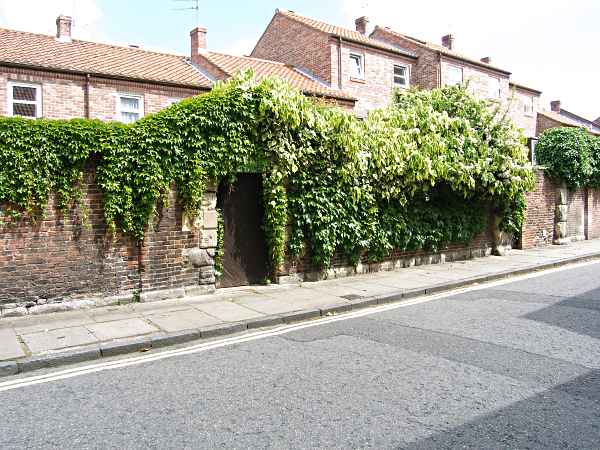 Gate pillars of 17th century house.The house was built in the late 17th century but had disappeared by the mid-19th leaving only these pillars from the boundary wall. In the background are modern houses built to bring residential dwelling back within the walls in areas until recently dominated by 19th century factories and warehouses. Photo: taken 4 June 2007. |