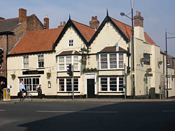 !7th century inn.This inn has been added to over the course of two or three centuries. The oldest part is that adjacent to Queen Street with two gables end on to Blossom Street which are late 17th century and which may be a rebuild of damage caused in the Civil War. Immediately to the left of that is a part of the inn built in the 1730s To the left of that, and just visible in the photograph is an early 19th century addition to the inn. Photo: taken 3 June 2007. |