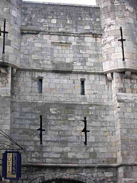 Introduced by error in the restoration of the Bar. The Bar was never used to shoot arrows on the local citizenry.