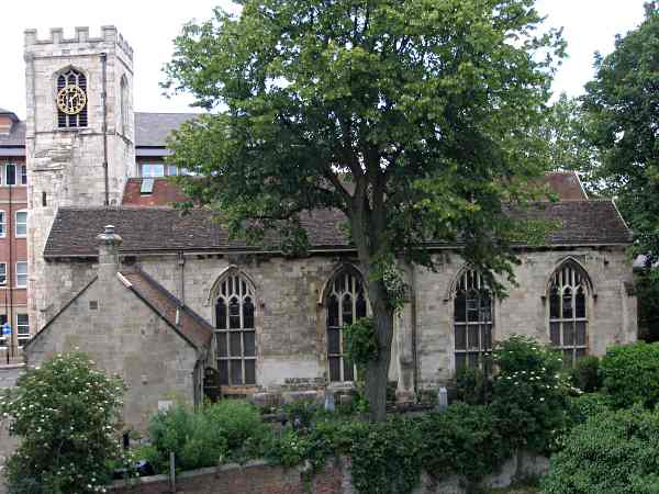 15th/19th centuries.The church is probably of pre-conquest origin and was originally built on land reclaimed from a marsh (the Hungate area). It was rebuilt in the 15th century and then most was rebuilt in the mid 19th century. The south side in this view is 19th century whilst the west tower is 15th century. (Ref. 1) The church is now used as an archaeological centre. Photo: taken 4 June 2007 |