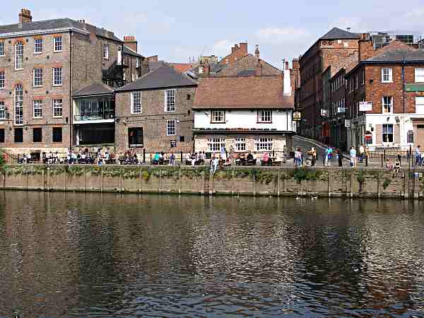 From Queen's Staith across the river.Probably first constructed in the mid 14th century and renovated a number of times. When the new Ouse Bridge was built in 1820 King's Staith was also rebuilt. (Ref. 1) Number 1 King's Staith, the pub, built in the early 17th century and modenised in 1878 and 1973 is timber framed. (ref. 1) Photo: taken 8 June 2007 |