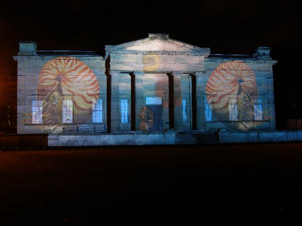 Projection on to the Yorkshire Museum front.