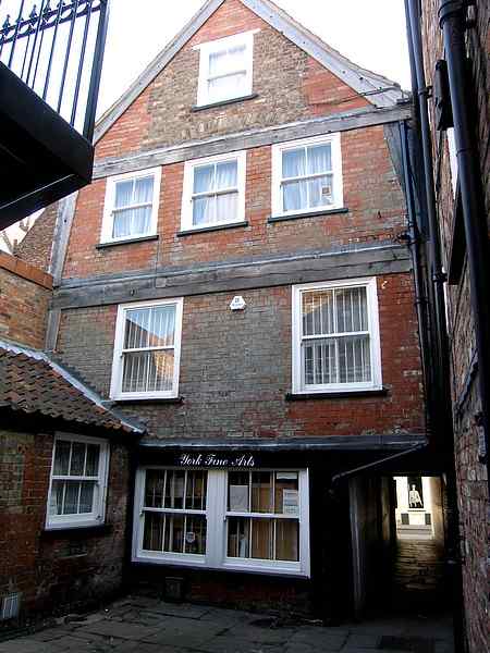Rear view of timber framed house on Petergate. This rear wall was rebuilt of brick around 1900. (Ref. 1)