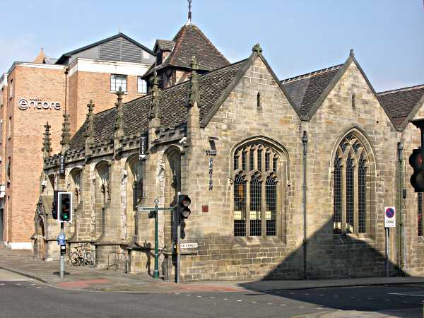St. John, Ousebridge End.A medieval church which survived the Reformation but not the more recent church closures, St. John's being closed in 1939. The current building is mainly 15th century, though the east wall is more modern due to the widening of North Street in 1850. In the mid 20th century, a small churchyard remained on Micklegate, since lost to a street widening. The church building became first an Institute for Architecture, and more recently a restaurant. Photo: taken 3 June 2007. |