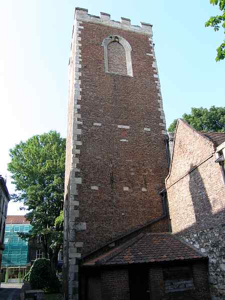 15th century tower.St. Martin's church is mentioned in the Domesday Book and the oldest part of the structure is dated to the early 11th century. The tower was built sometime in the 15th century when it was topped with a wooden spire. In the late 17th century it was faced with the brick now seen. (Ref. 1) In the 16th century rationalisation of the York parishes, St. Gregories parish was combined with St. martin.s and the church became St. martin's-cum-Gregory. It remains the only one in York to have retained in its name the name of an absorbed parish. Photo: taken 8 June 2007 |