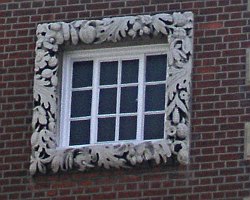 Weather vane and (below) decoration on topmost windows showing the dedication to producing a totally finished building.<>p>